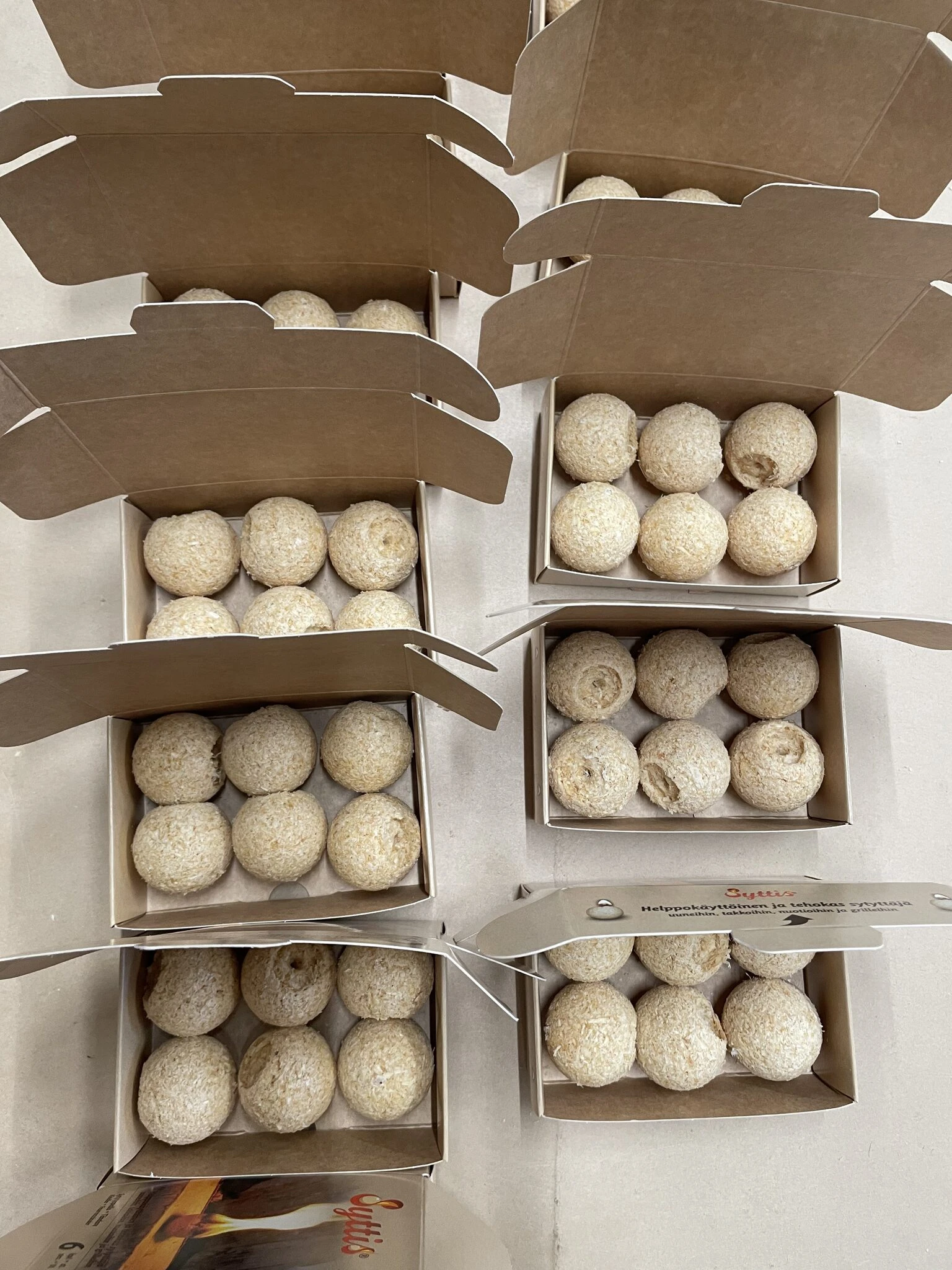 Kaikki Syttikset pakataan muovittomasti pahvilaatikoihin. Pahvi on uusiutuvaa ja kierrätettävää. Kun pallot on käytetty, voit laittaa paketin paperinkeräykseen tai polttaa. Tulemme uudistamaan pakkaukset myöhemmin tänä vuonna. Haaveenamme on pakata Syttikset kierrätysmateriaaleihin, että tuotteen hiilijalanjälki pienenee. Ensin aiomme kuitenkin käyttää varastossa olevat pakkaukset pois. Jos sinulla on ideoita tai ehdotuksia pakkausten suhteen, ota yhteyttä!