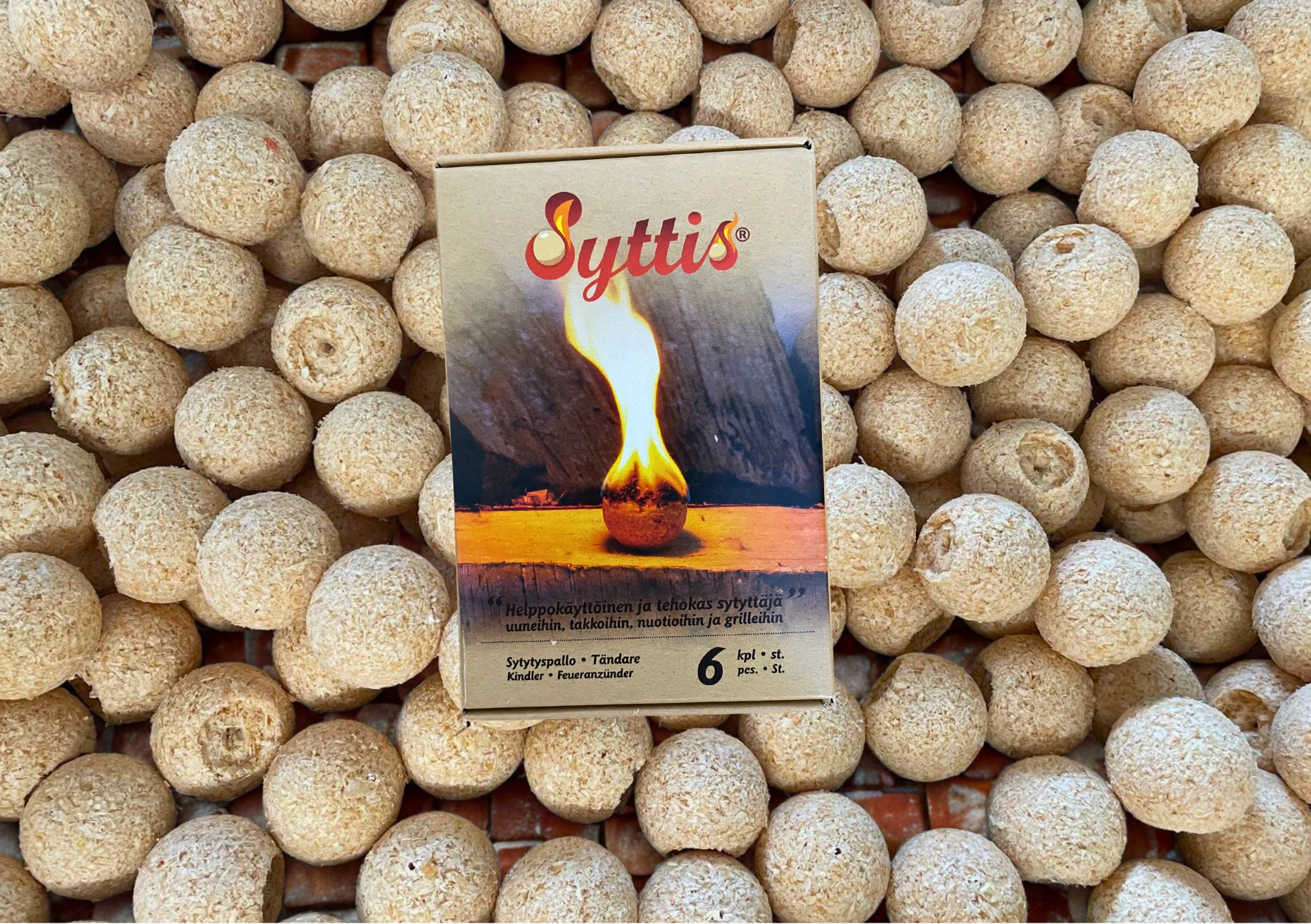 Pieni 6 kappaleen pakkaus Syttis-sytytyspalloja on kiva mökkituliainen. Se on myös kätevä ja kevyt ottaa mukaan retkelle.